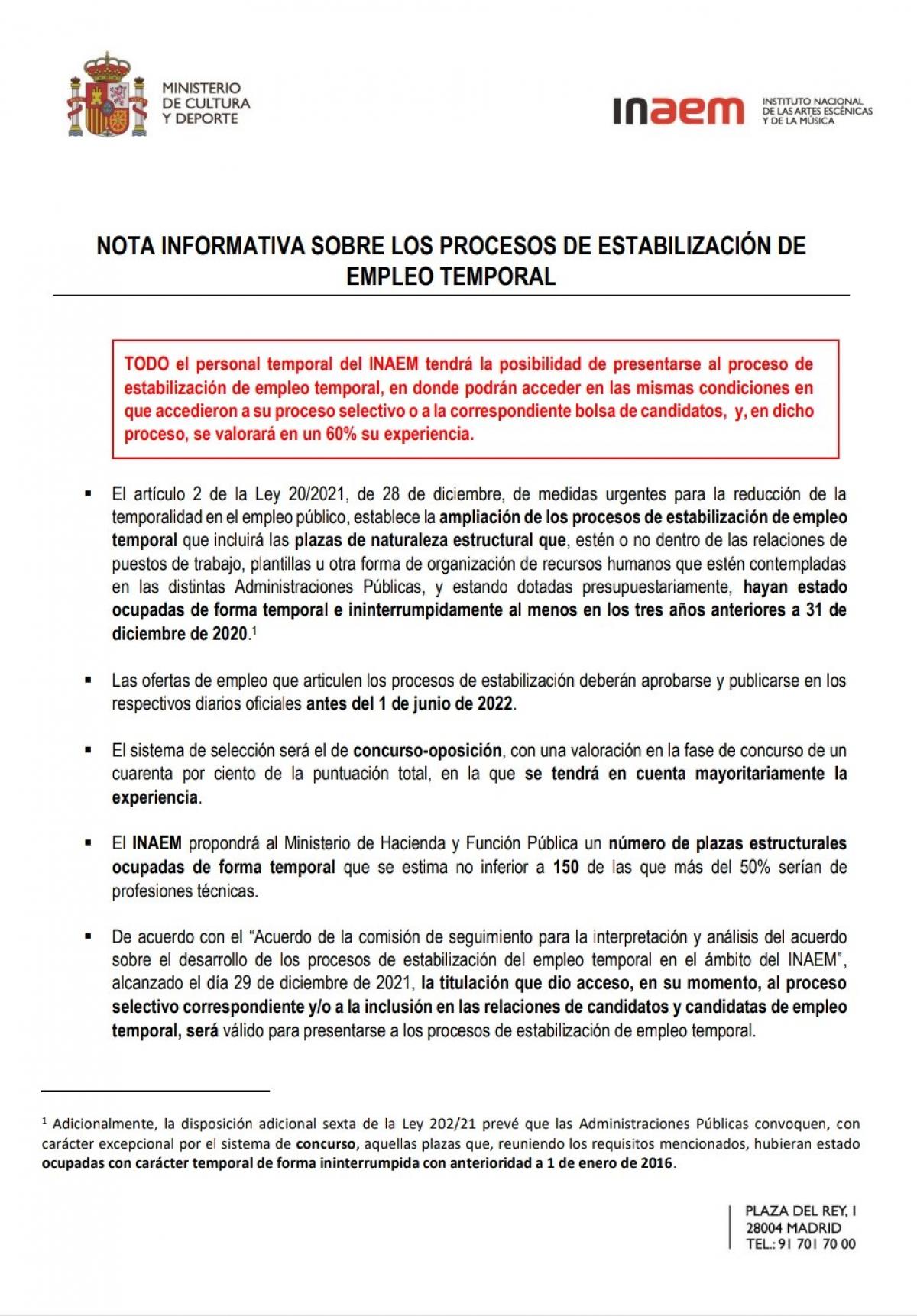 22/01/2022. Instituto Nacional de las Artes Escénicas y de la Música
