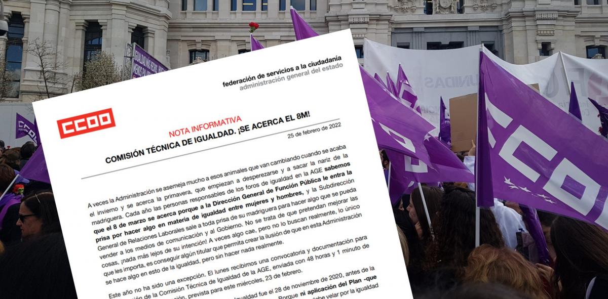 CCOO exige un protocolo de acoso sexual para la AGE que plasme un compromiso real por la igualdad