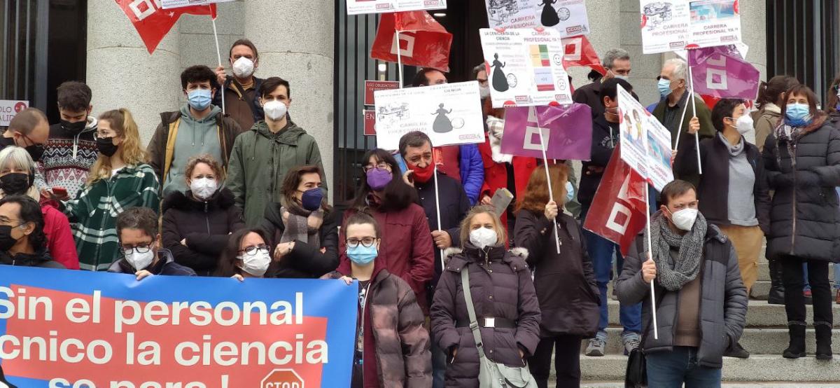 Concentración en la escalinata de Serrano, 117 en Servicios Centrales del CSIC en Madrid y en resto de territorios. Reclamamos una Ley de la Ciencia con Derechos para TODO el personal de la investigación (técnico, de gestión I+D+i, investigador laboral), que legisle y reconozca la carrera profesional y dé estabilidad a todas las trabajadoras y trabajadores del sector de la I+D+i, para dejar de ser el ejemplo más sangrante de precariedad en las Administraciones Públicas.
